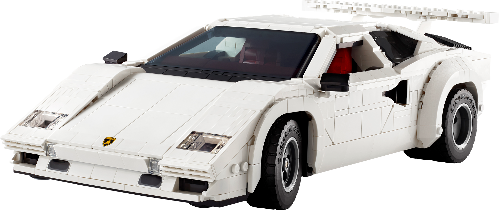 Dimensions – The white Lamborghini Countach 5000 Quattrovalvole model car in this 1,506-piece LEGO® set measures over 9 cm (3.5 in.) high, 34 cm (13 in.) long and 16 cm (6.5 in.) wide